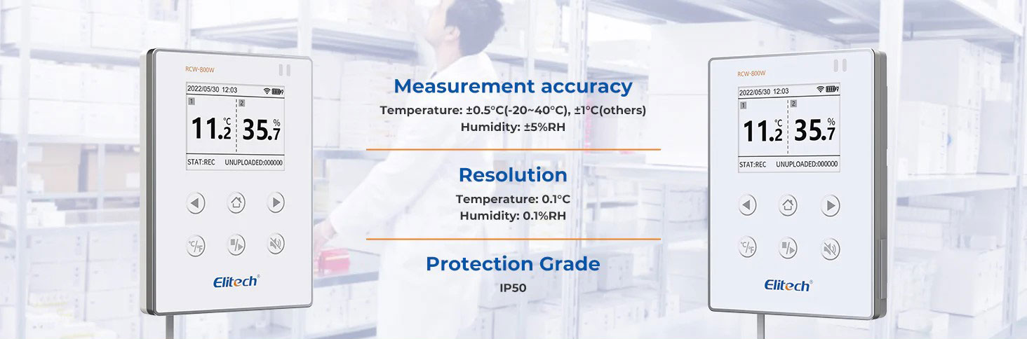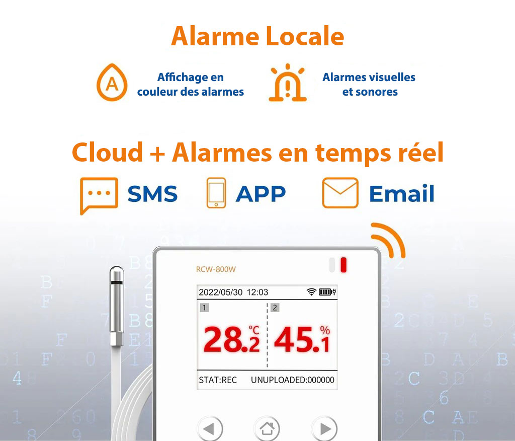 RCW-800-THE Enregistreur de température humidité Wifi connecté avec alarmes en temps réel